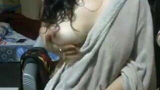 Saggy tits doggy style and natural boobs with big nipples close up. A slender milf with a glorious ass in a g-string often masturbates at home. Fetish.