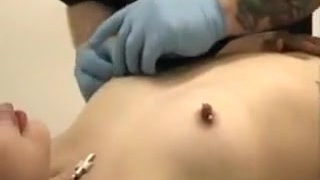 Nippleringlover Insane Milf Beadschain In Pierced Vag Large Nipple Rings Boots Net Shirt Latex Thong Wide Open Wet Pussy