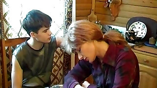 Caught my stepsister masturbating and penetrated her moist pussy on the table