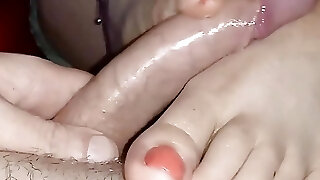Squeezing jism out of a Japanese dick with my toes