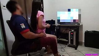 cute step sis caught red transferred while witnessing porn in mobile | closeup shaved pussy fucking and Farting