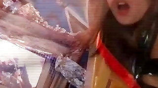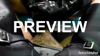 Blond in latex Jacket on Sybian