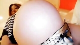 oviparous Japanese schoolgirl plays with instructor's eggs in the douche of the women's locker apartment