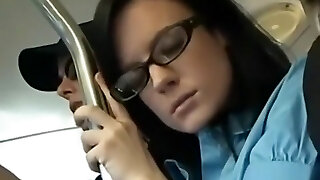 Japanese brunette is often traveling by bus, because someone always gets to tear up her brains out