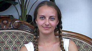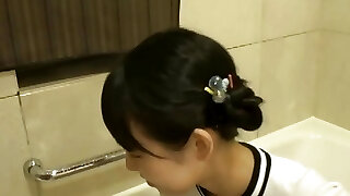 Skinny Japanese brown-haired, Min is spreading her legs wide and getting fucked in a hotel room