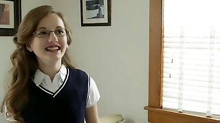 Innocent sister helps her brother-in-law and gets dick in her tight shaven pussy! Taboo with a young college brunette