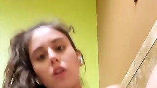 Brunette Teenage Striptease In School Bathroom